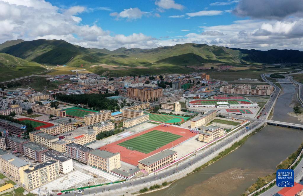 這是甘肅省甘南藏族自治州碌曲縣縣城(無人機照片,2021年8月30日攝)。新華社記者 杜哲宇 攝