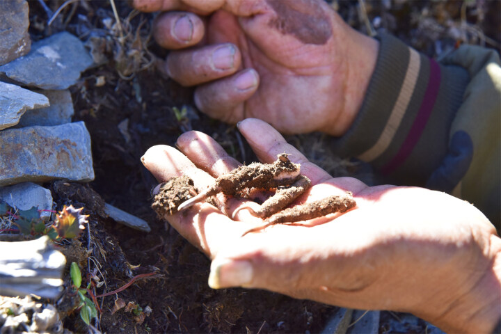 每年的5月至6月是香格里拉市東旺鄉(xiāng)一年一度的“蟲草采挖”季。近日,在東旺鄉(xiāng)蟲草山上,當?shù)厝罕娫诤0?000至5000米的高山草地上尋找冬蟲夏草。采挖者踐行“生態(tài)采挖”,在挖完冬蟲夏草后,覆蓋草皮,盡量減少對生態(tài)的破壞。據(jù)了解,今年由于雨水不足致使東旺地區(qū)蟲草產(chǎn)量較低,蟲草收購價格較去年每根上漲10元左右。
