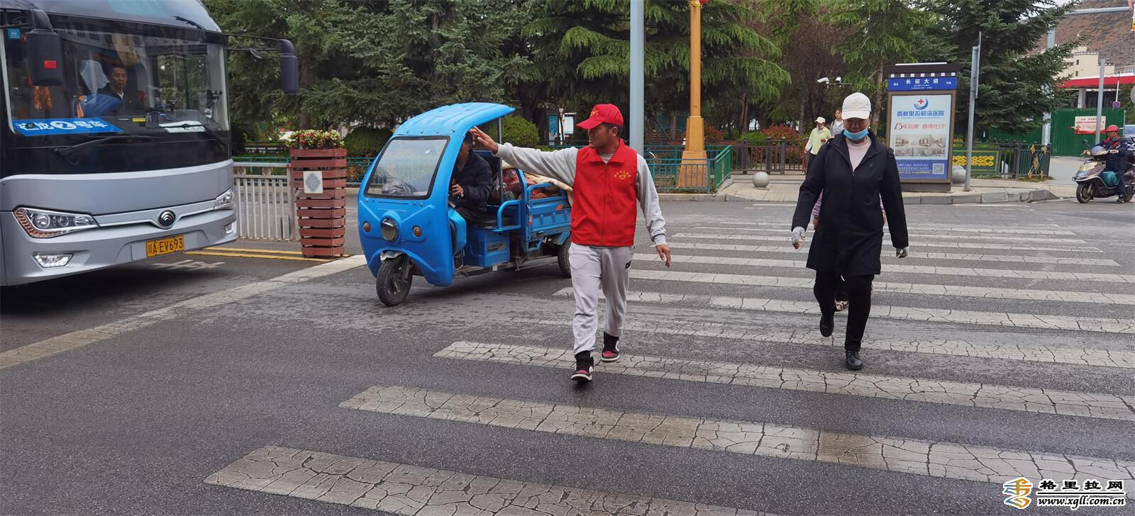 6月9日上午8時,香格里拉文明交通“紅馬甲”們開始了一天的文明交通勸導服務。