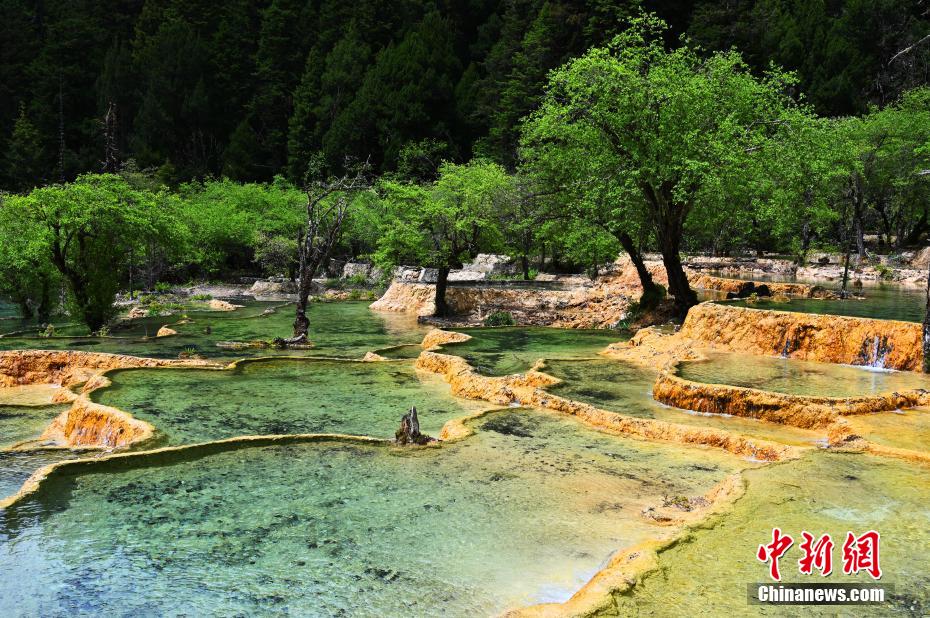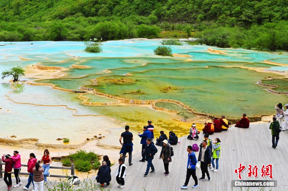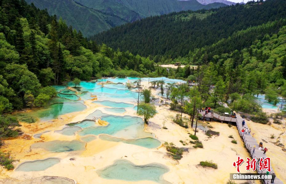 6月19日,初夏時節(jié),世界自然遺產(chǎn)黃龍風(fēng)景名勝區(qū)風(fēng)景如畫,吸引眾多游客觀光游玩。