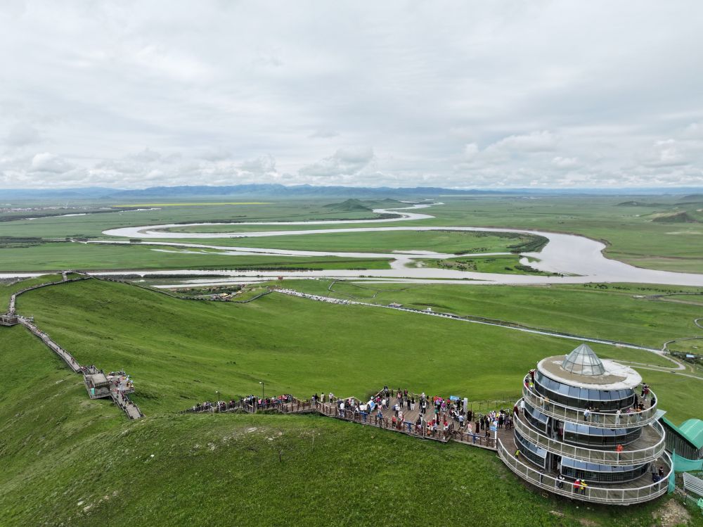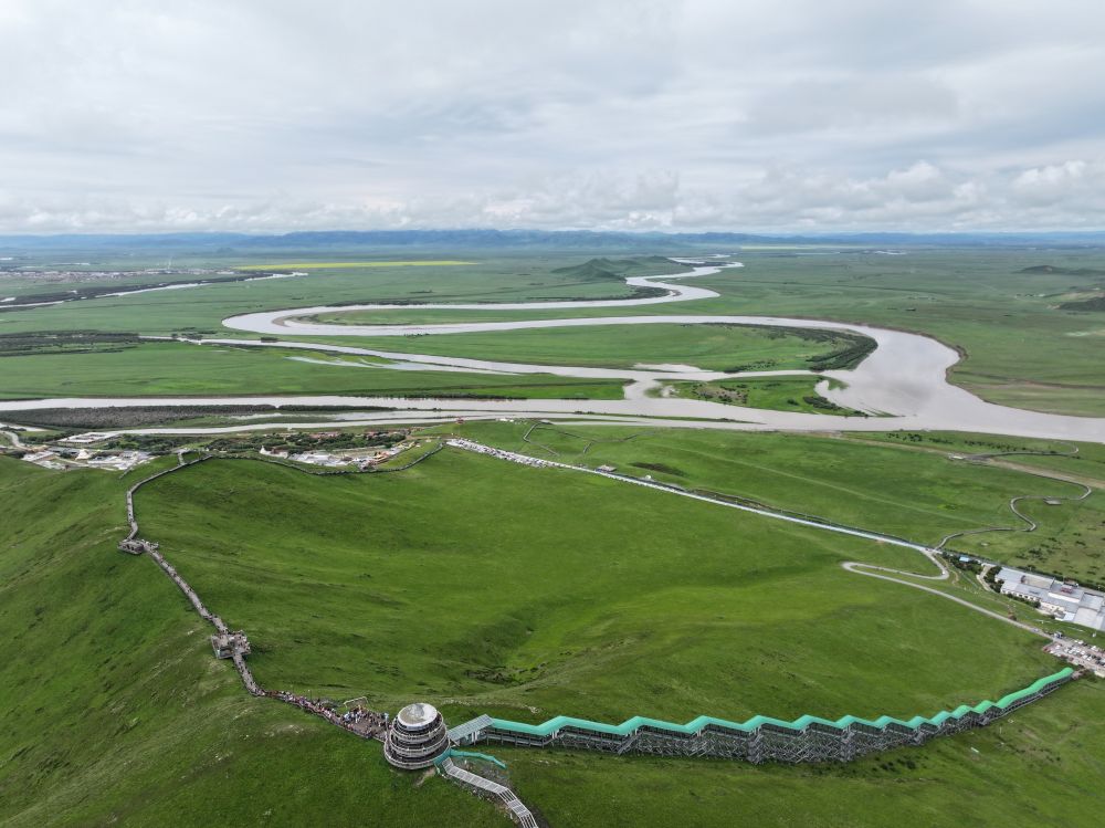 7月14日,游客游覽若爾蓋縣黃河九曲第一灣景區(qū)。新華社記者 邢拓 攝