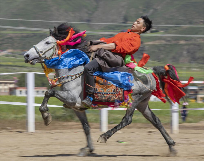 據(jù)悉,來馬鎮(zhèn)會(huì)師走馬場(chǎng)是G317線規(guī)模最大的走馬賽場(chǎng)。這里搭建了集馬匹訓(xùn)練、交易和馬飾品生產(chǎn)、加工于一體的走馬產(chǎn)業(yè)全鏈條平臺(tái),有效調(diào)動(dòng)了當(dāng)?shù)厝罕姷姆e極性,帶動(dòng)走馬產(chǎn)業(yè)發(fā)展和群眾增收致富。同時(shí),有效降低了本地良種走馬的流失率,保護(hù)和發(fā)揚(yáng)獨(dú)具特色的走馬文化。