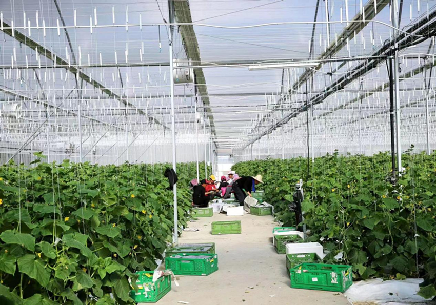 集水肥一體、物聯(lián)傳感、數(shù)字植保、立體循環(huán)、智慧數(shù)字化大棚……走進(jìn)丹巴縣半扇門鎮(zhèn)喇嘛寺村的農(nóng)業(yè)園區(qū),番茄、黃瓜、無(wú)筋豆、辣椒、蒜苗等長(zhǎng)勢(shì)喜人。智慧大棚里12畝左右的黃瓜、40畝的溫室大棚高山番茄已陸續(xù)上市。預(yù)計(jì)今年能產(chǎn)出黃瓜25萬(wàn)斤,產(chǎn)值約100萬(wàn)元;番茄40萬(wàn)斤,產(chǎn)值約200萬(wàn)元;露天種植辣椒12畝,產(chǎn)值10萬(wàn)元。