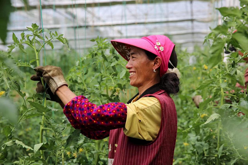 連日來(lái)的持續(xù)高溫,丹巴縣半扇門鎮(zhèn)團(tuán)結(jié)村村民陳宗花,就一直在喇嘛寺村黨支部書(shū)記袁強(qiáng)創(chuàng)建的曲登沙農(nóng)機(jī)專業(yè)合作社基地為辣椒澆水。勞動(dòng)強(qiáng)度不大,一天有100元的收入,年收入1.8萬(wàn)元。自從2015年到基地打工以來(lái),她的年收入就穩(wěn)定在2萬(wàn)元左右。
