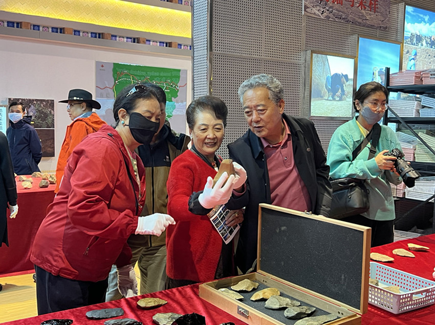 來(lái)自省內(nèi)外學(xué)術(shù)界和演藝界的甘孜名人戴上手套近距離觸摸石器物品所傳達(dá)的歷史溫度。