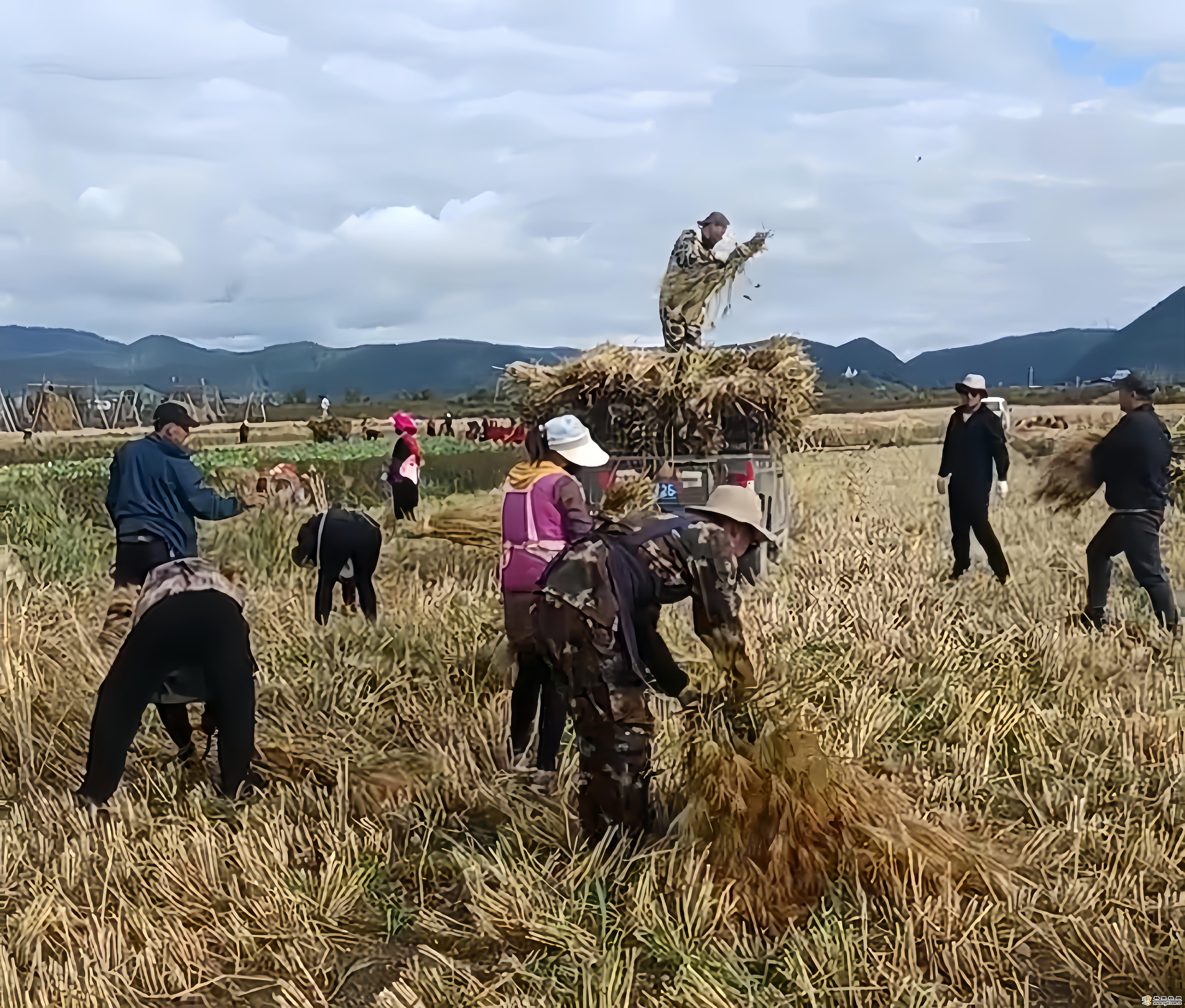 香格里拉市小中甸鎮(zhèn)聯(lián)合村青稞進(jìn)入收割期,村民們臉上滿溢著收獲的喜悅開鐮收割、上架晾曬,田地間一派熱火朝天的繁忙景象。