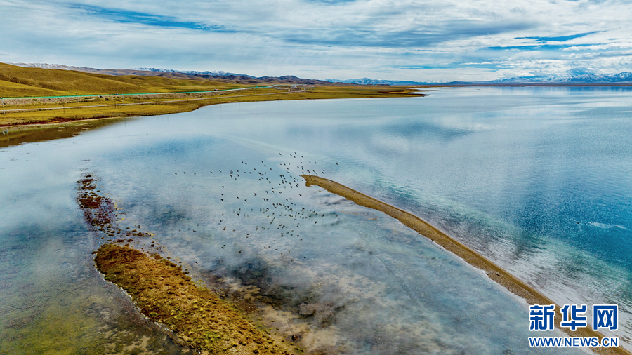秋日清晨,位于有“千湖之縣”之稱的青海省果洛藏族自治州瑪多縣境內(nèi)的冬格措納湖湖水湛藍、天空遼闊,湖畔草地綠黃交融,靜美迷人。