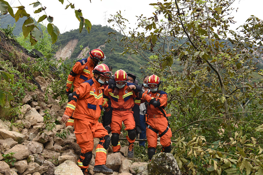 圖為“9·5”瀘定地震發(fā)生后,甘孜消防救援人員背著受傷老人下山。