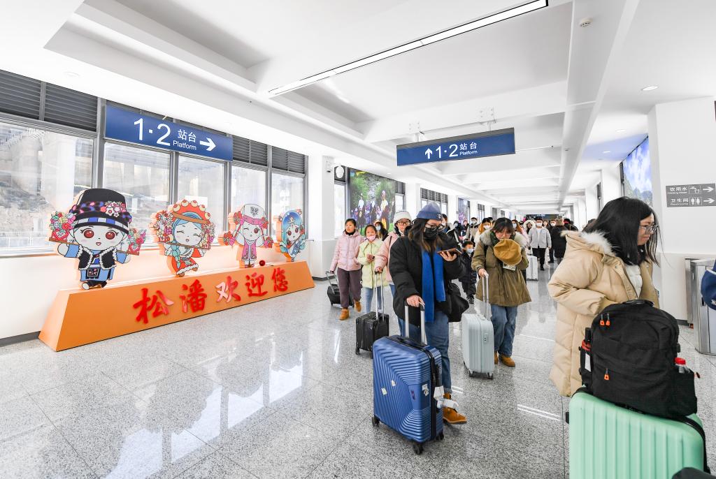 在川青鐵路鎮(zhèn)江關(guān)站,前來游玩的游客陸續(xù)出站。新華社記者 王曦 攝