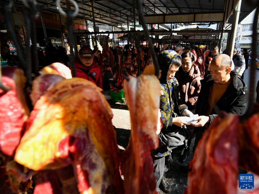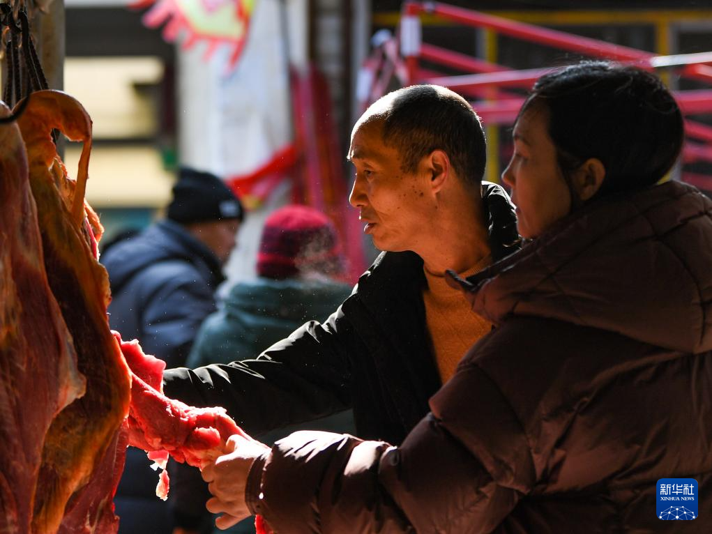 1月28日,游客在四川阿壩藏族羌族自治州茂縣農(nóng)貿(mào)市場選購牦牛肉。新華社記者 王曦 攝