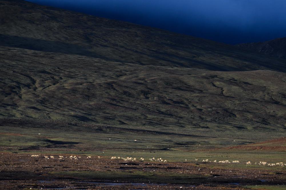 每年6月到8月是可可西里的“雨季”,全年69.5%的降水都發(fā)生在這三個月。這一季節(jié)來到可可西里腹地可以看到,星星點點的湖泊像一塊塊不規(guī)則的玻璃,鑲嵌在荒原之上。