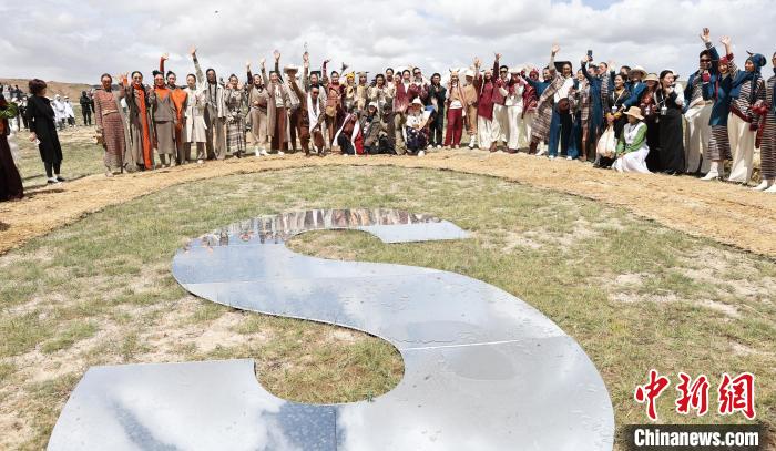 28日,黃河之源·果洛牦牛絨時裝秀在青海省果洛藏族自治州海拔約4200米的冬格措納湖畔舉行。