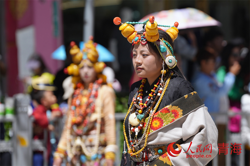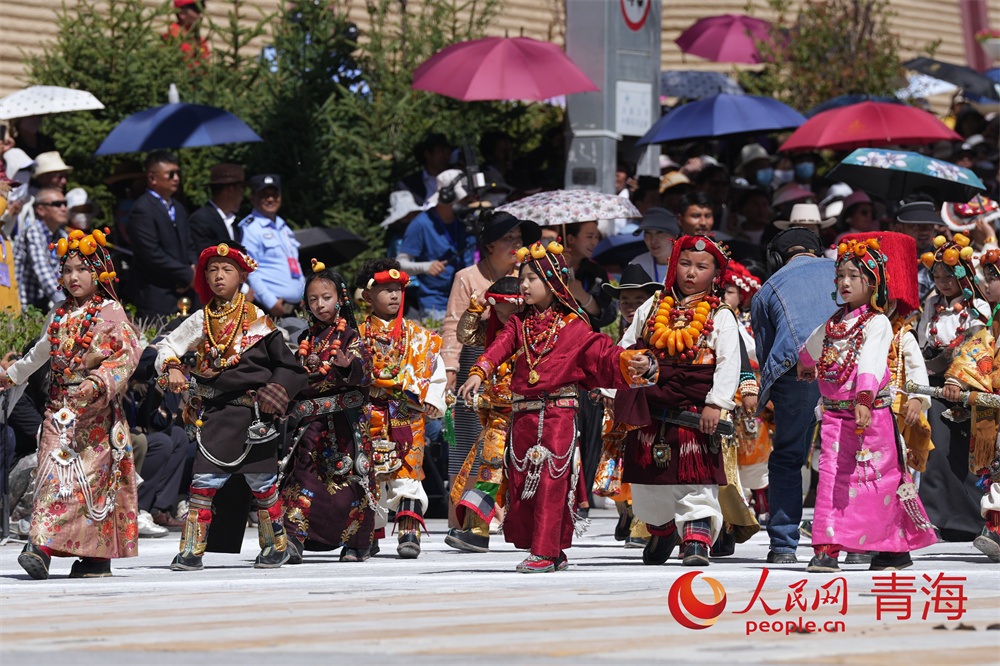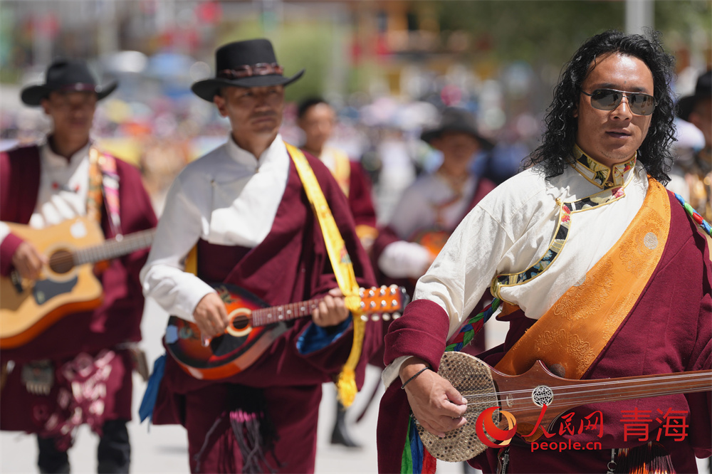 巡演現(xiàn)場,玉樹馬術方隊、康巴漢子方隊、伊舞方隊、藏族彈唱方隊、格仲服飾方隊、游牧方隊、玉樹州非物質(zhì)文化遺產(chǎn)傳承人方隊等輪番登場,形式多樣的非遺展演為廣大游客和當?shù)厝罕妿砹艘粓鲆曈X盛宴。