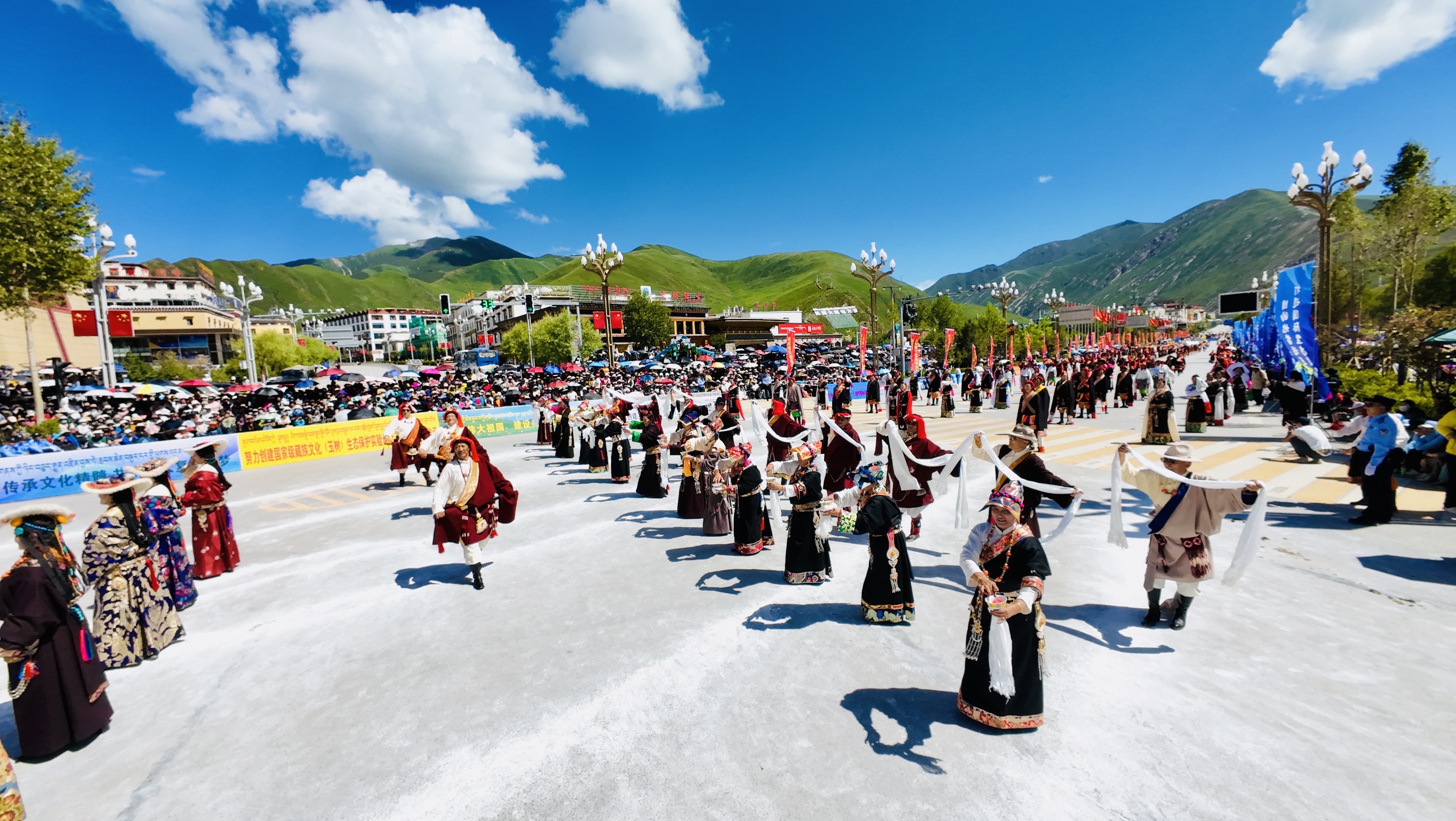 湛藍的天空映襯著高原的江河,潔白的雪山滋養(yǎng)無垠的牧場,又是一年高山流水縈繞著牧歌的時節(jié)。7月24日,一場行走的非遺展在青海省玉樹藏族自治州玉樹市街頭上演?!盀t灑的康巴人”——國家級藏族文化(玉樹)生態(tài)保護實驗區(qū)建設成果非遺巡演現(xiàn)場,瀟灑多彩的玉樹民族民俗文化在此呈現(xiàn)。