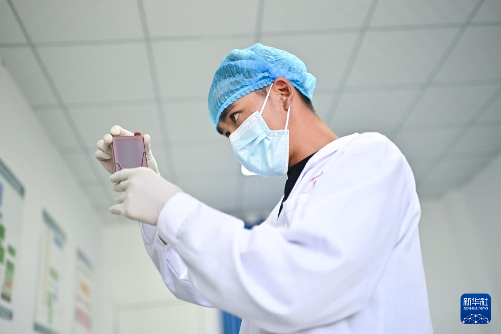 7月31日,青海省果洛藏族自治州達日縣窩賽鄉(xiāng)衛(wèi)生院醫(yī)生格桑冷智在進行醫(yī)學檢驗。新華社記者 張龍 攝