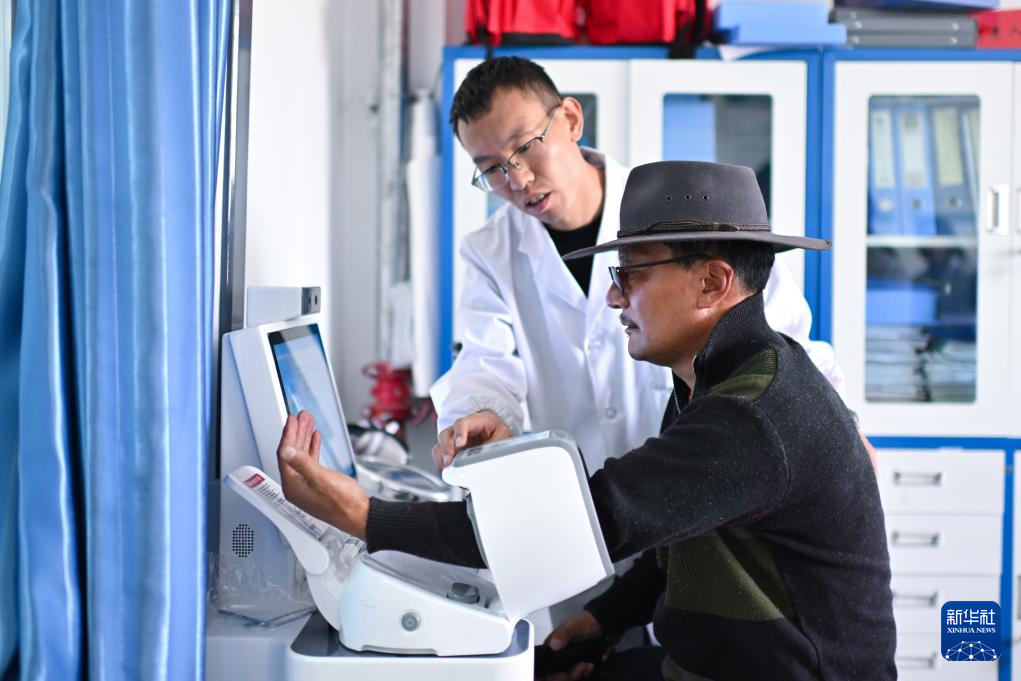 7月31日,青海省果洛藏族自治州達日縣窩賽鄉(xiāng)衛(wèi)生院醫(yī)生李陽在為群眾體檢。新華社記者 張龍 攝