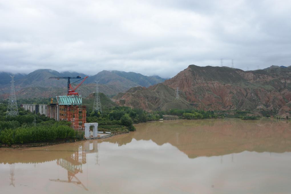 這是9月5日拍攝的尖扎黃河特大橋施工現(xiàn)場(chǎng)。新華社記者 王浡 攝
