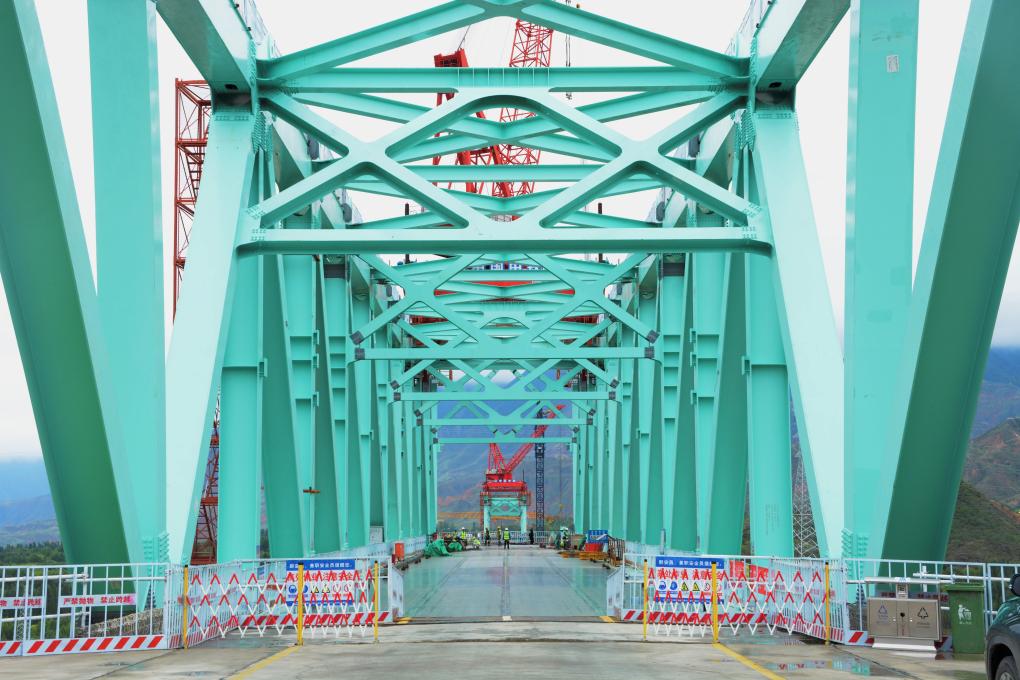 這里是位于青海省黃南藏族自治州尖扎縣和海東市化隆回族自治縣交界處的川青鐵路尖扎黃河特大橋項(xiàng)目施工現(xiàn)場(chǎng)。作為川青鐵路全線重點(diǎn)橋梁工程之一,尖扎黃河特大橋也是我國(guó)第一座跨越黃河的鐵路鋼桁拱橋。
