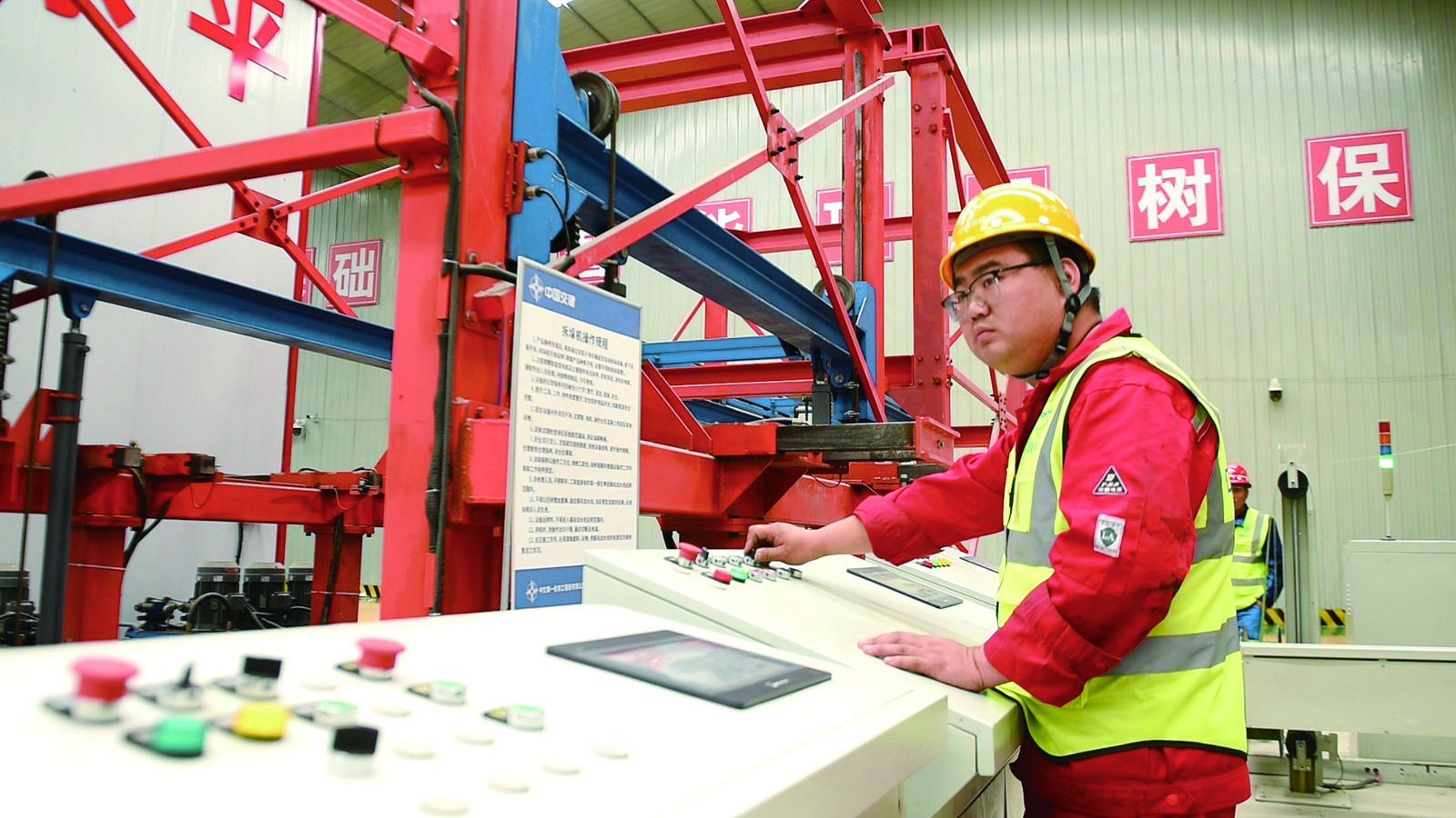 工作人員操作小型構(gòu)件預(yù)制生產(chǎn)設(shè)備。殷之皓 攝