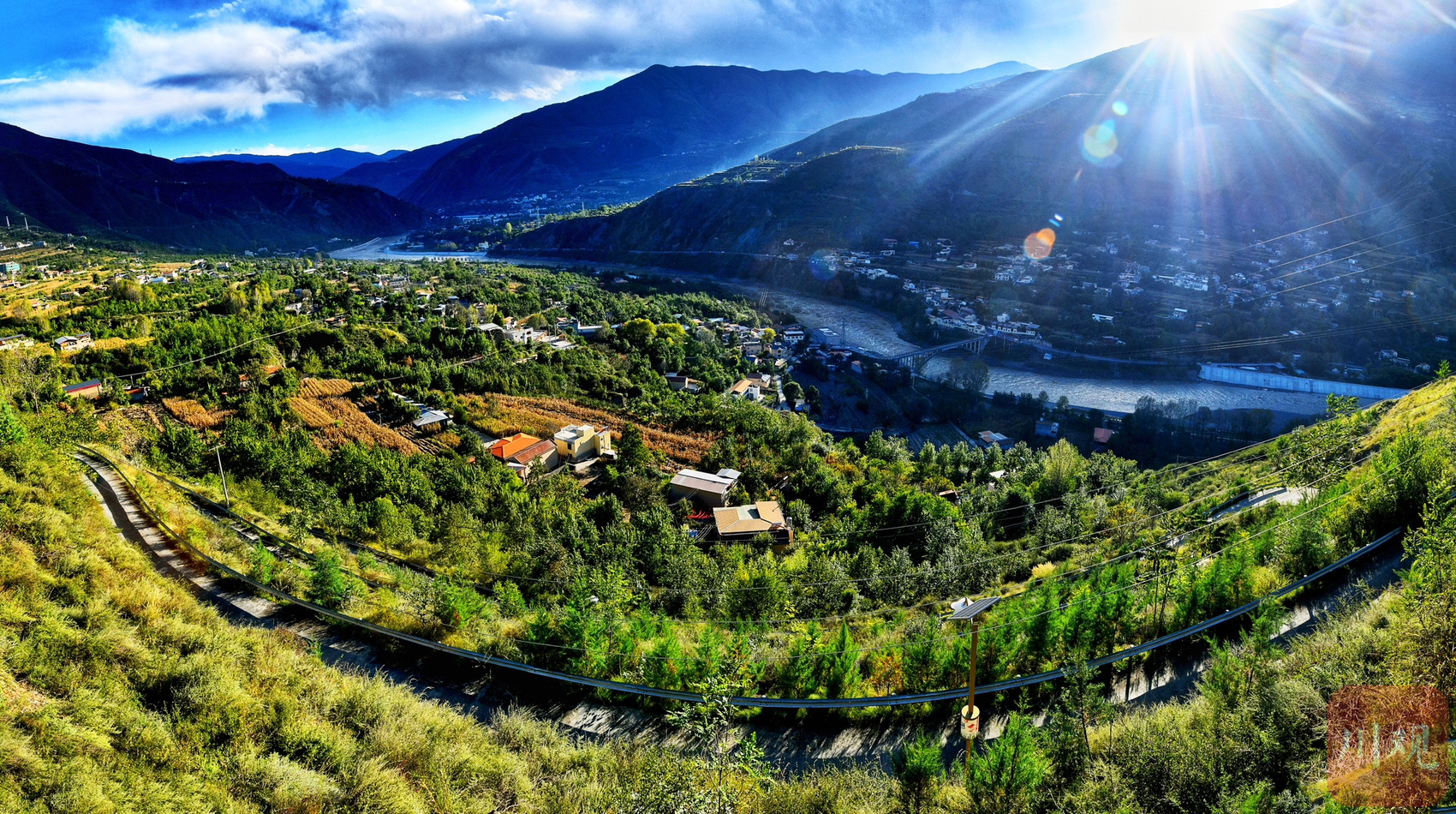 村落在陽光中顯得格外美麗。
