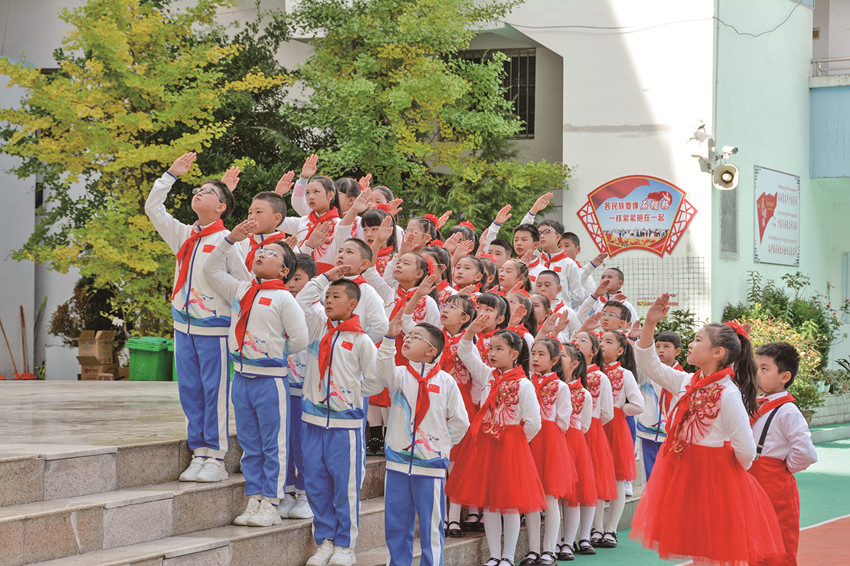 活躍提升組織生活也是少先隊工作強基固本的重要環(huán)節(jié)。通過健全少先隊階梯式成長激勵體系;全面實施分批入隊、分段教育、分級激勵和推優(yōu)入團;依托“紅領(lǐng)巾獎?wù)隆备采w隊中教育全過程等措施,全市14至15周歲新入團團員經(jīng)由少先隊組織推優(yōu)入團達100%。此外,全覆蓋開展“開學第一堂隊課”、主題隊課活動,規(guī)范舉行入隊儀式等,讓少先隊員組織意識和光榮感全面增強。