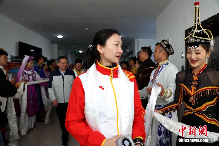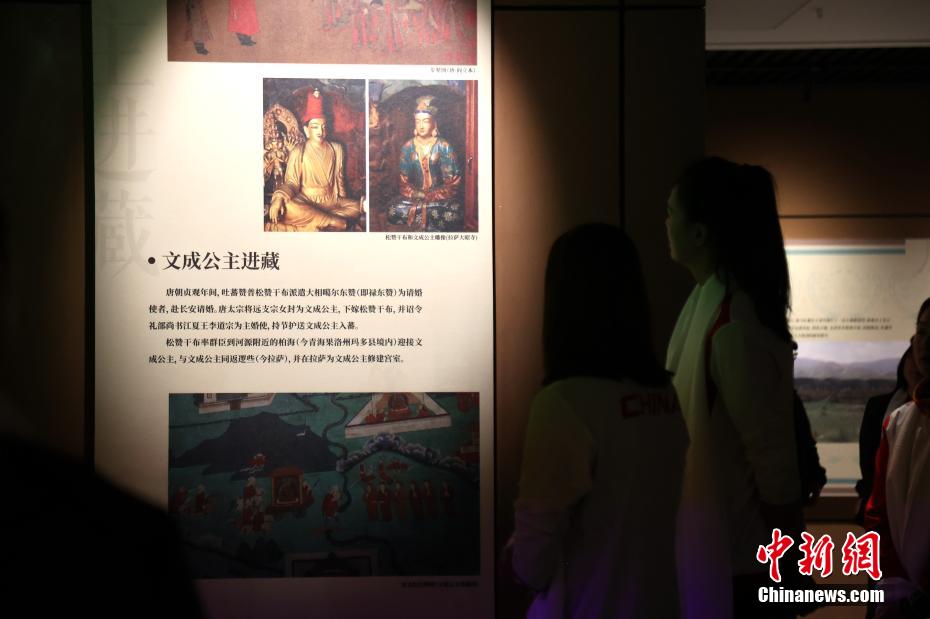 圖為奧運(yùn)冠軍在海南州了解文成公主進(jìn)藏歷史。中新社記者 張?zhí)砀?攝