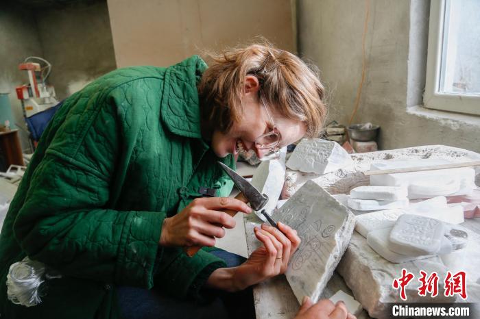 圖為外國嘉賓體驗(yàn)嘛呢石刻技藝。馬銘言 攝
