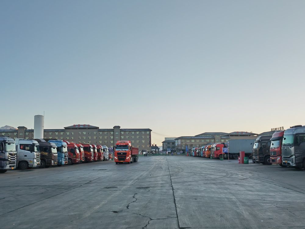 記者走進青海省格爾木昆侖物流園,一排排大貨車整齊排列,司機們有的寒暄聊天,有的打盹小憩,還有些忙著跟親朋好友視頻聊天。