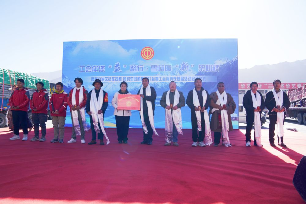 12月5日,西藏自治區(qū)貨車司機、網(wǎng)約車司機集中入會暨工會服務在基層活動啟動儀式在拉薩城投物流園舉行。新華社發(fā)