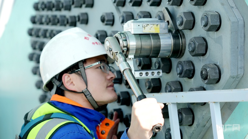 何映正在檢測(cè)螺栓扭矩。央廣網(wǎng)記者 汪曉青 攝