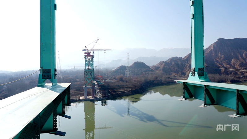 圖為12月20日拍攝的尖扎黃河特大橋施工現(xiàn)場(chǎng)。央廣網(wǎng)記者 汪曉青 攝
