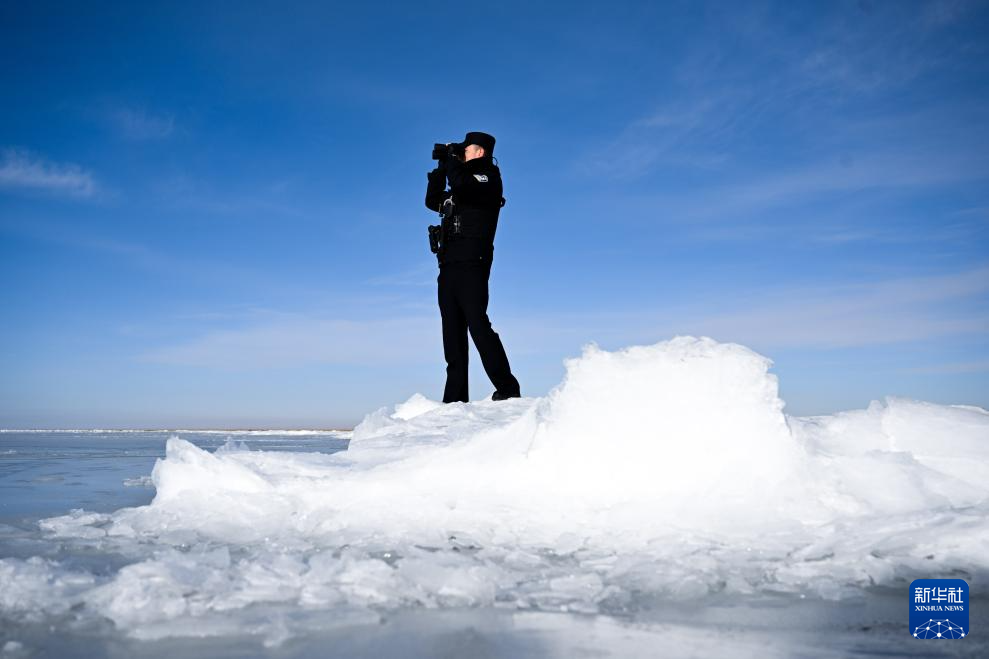 1月9日,剛察縣青海湖派出所民警喬勝云在巡護青海湖。新華社記者 李寧 攝