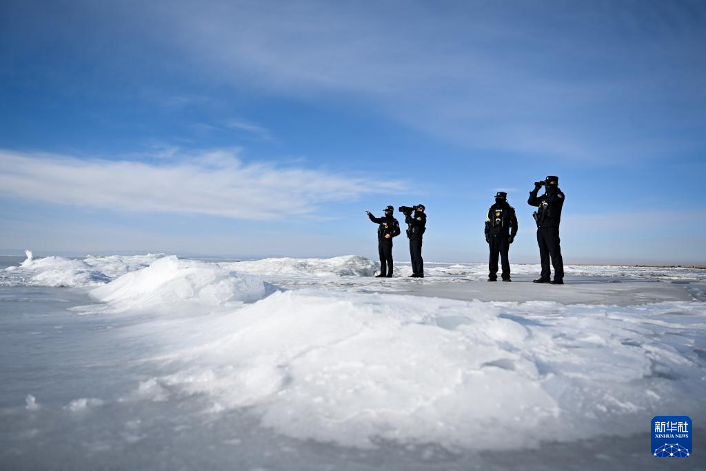 1月9日,剛察縣青海湖派出所民警在巡護青海湖。新華社記者 張龍 攝