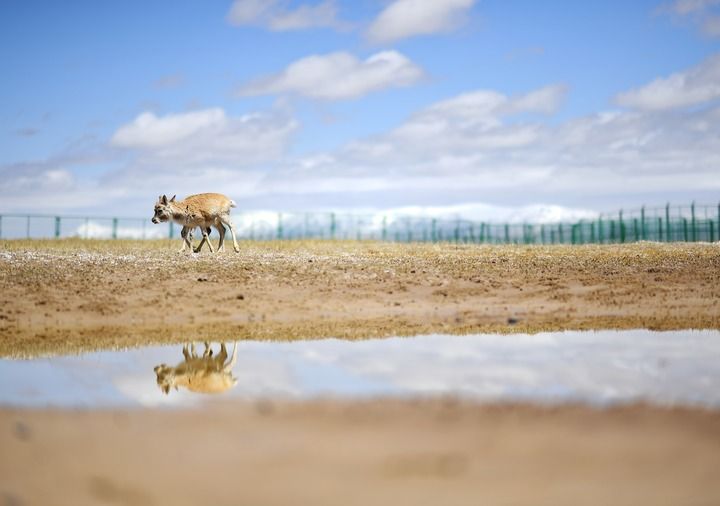 藏羚羊在可可西里國家級(jí)自然保護(hù)區(qū)索南達(dá)杰保護(hù)站野生動(dòng)物救助中心活動(dòng)(2023年5月30日攝)。新華社記者 薛玉斌 攝