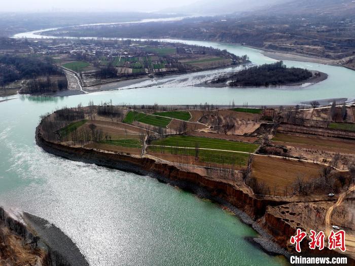 航拍圖為蜿蜒流淌的黃河上游尖扎段。(無人機(jī)照片)薛蒂 攝