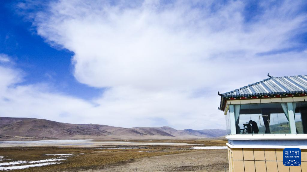 4月8日,生態(tài)管護(hù)員在青海隆寶國家級(jí)自然保護(hù)區(qū)管理站觀測鳥類(無人機(jī)照片)。新華社記者 齊芷玥 攝