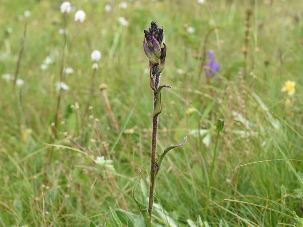 論文第一作者、中國(guó)科學(xué)院華南植物園助理研究員徐連升介紹,德格雪蓮是多年生草本植物。其莖直立,葉片厚實(shí),且呈現(xiàn)特有形態(tài):邊緣是皺波狀,有鋸齒;中上部葉逐漸變?yōu)槟べ|(zhì),并由綠色變?yōu)樽仙?。頭狀花序有4至15個(gè),聚集成傘房狀,小花則呈現(xiàn)深紫色。