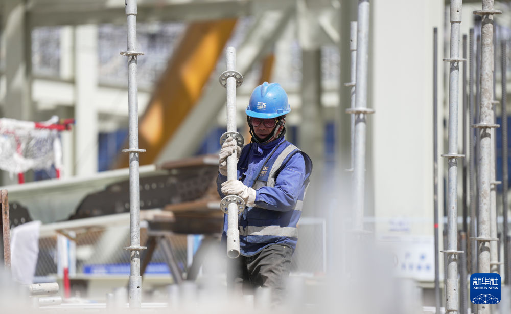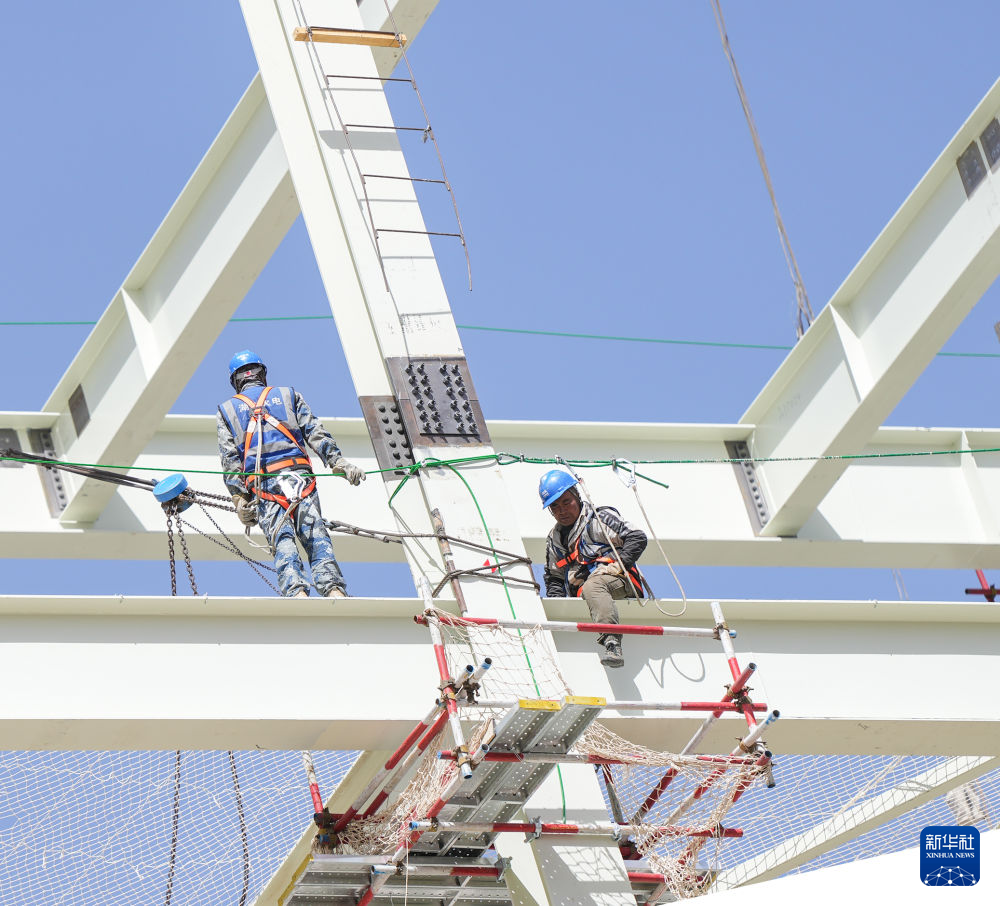 4月15日,工人在青海華電格爾木一期2×660兆瓦煤電項(xiàng)目建設(shè)現(xiàn)場(chǎng)施工。新華社記者 解統(tǒng)強(qiáng) 攝
