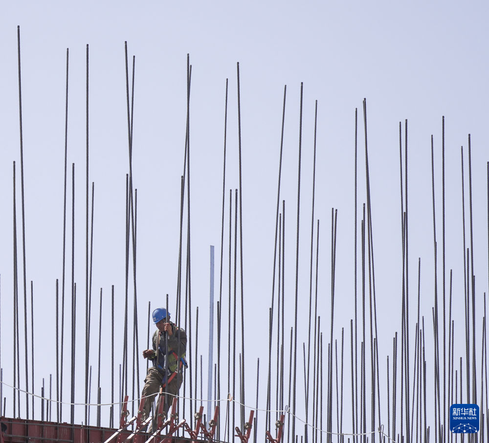 4月15日,工人在青海華電格爾木一期2×660兆瓦煤電項(xiàng)目建設(shè)現(xiàn)場(chǎng)施工。新華社記者 杜笑微 攝