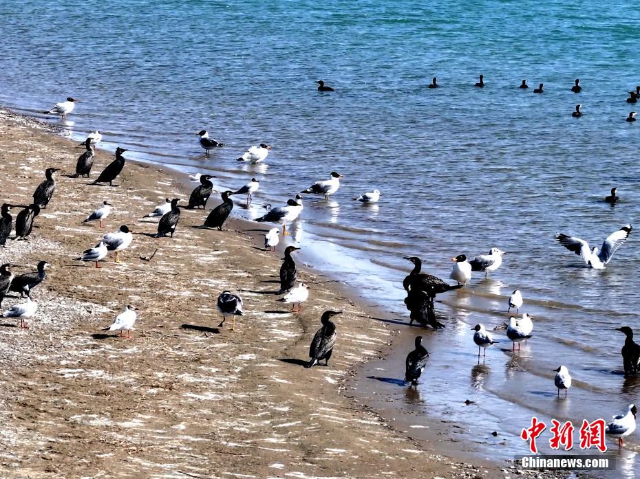 圖為候鳥在青海湖畔嬉戲。張世偉 攝