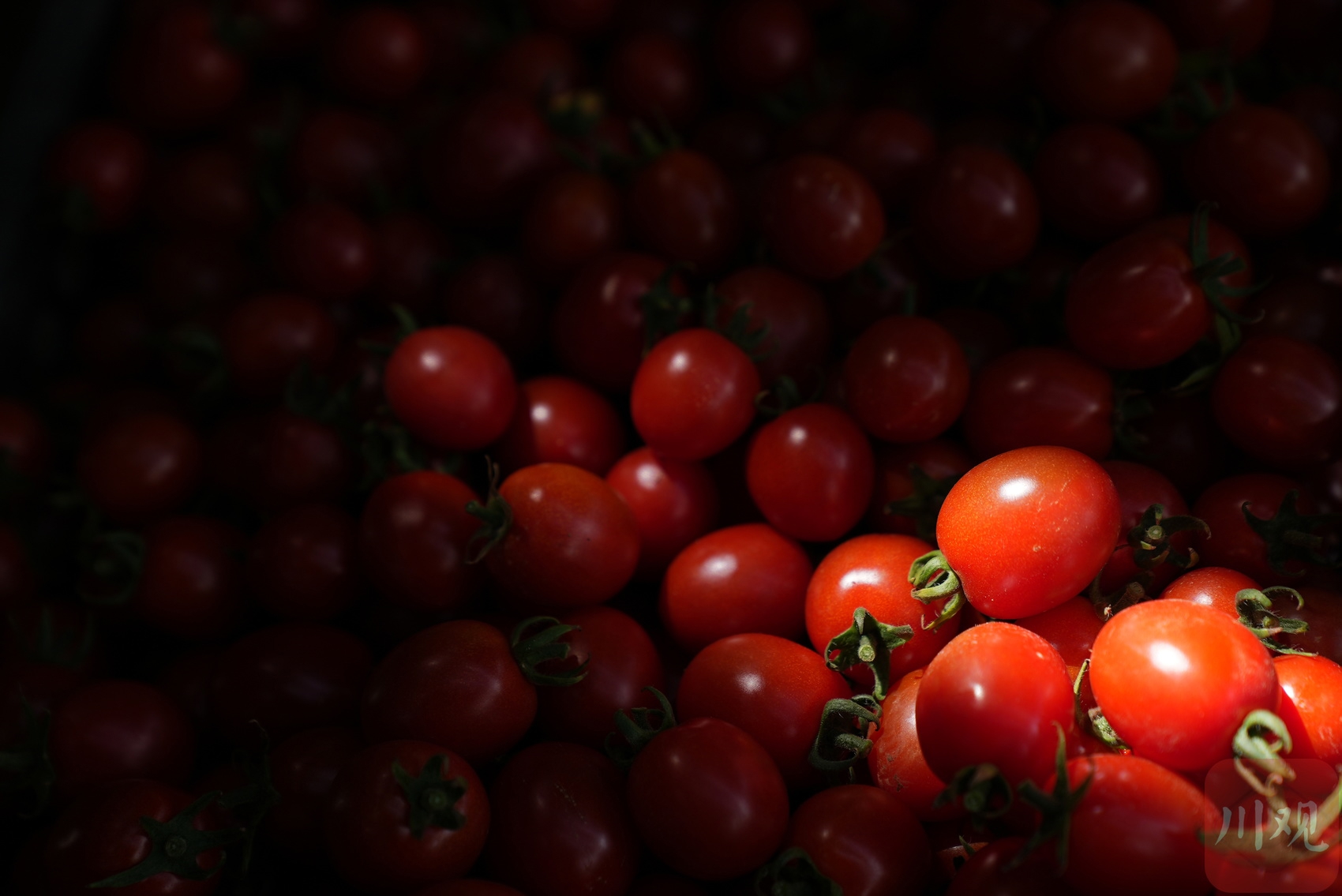 8月4日,松潘高原現(xiàn)代農(nóng)業(yè)產(chǎn)業(yè)園區(qū),新采摘的高原水果小番茄。