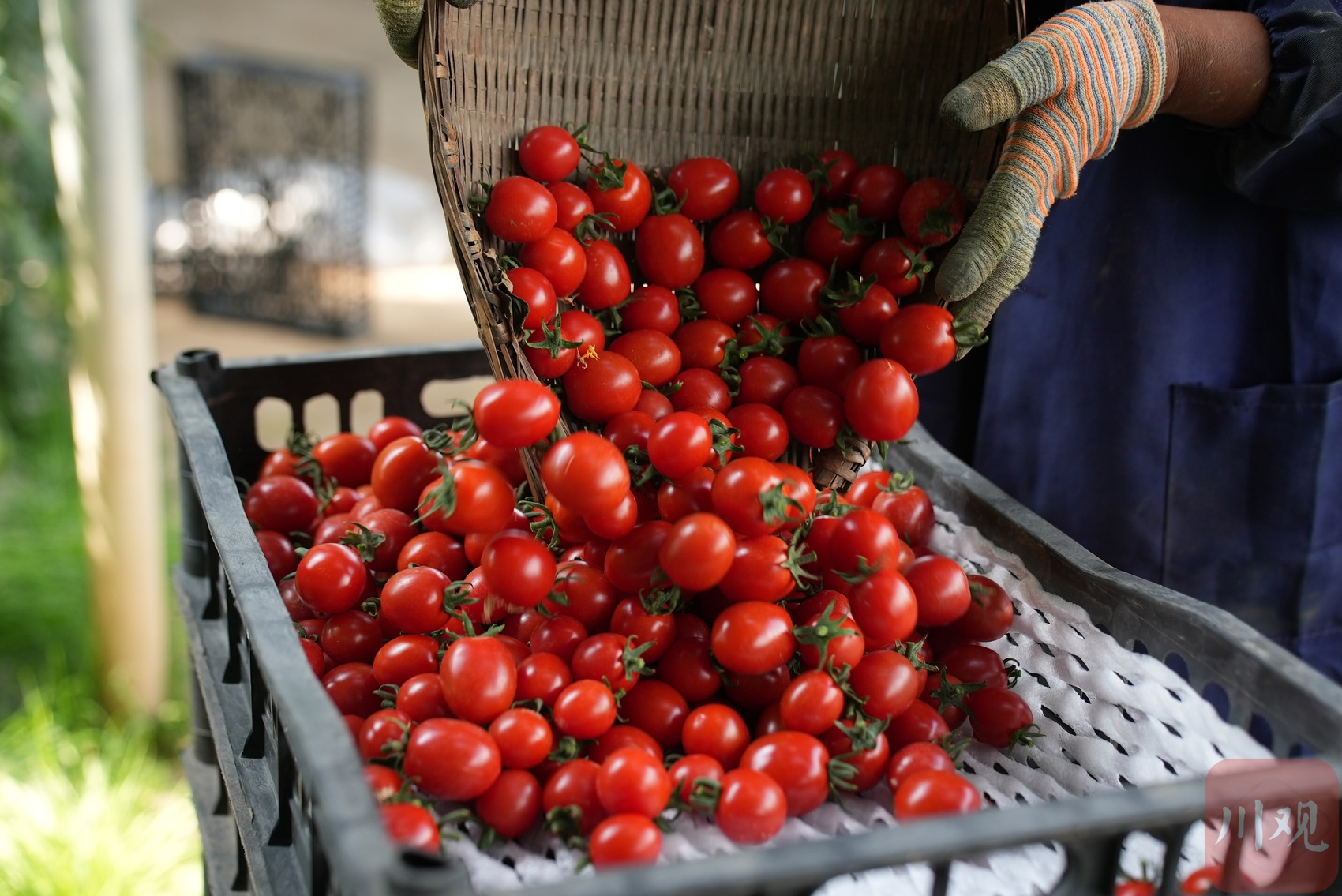 8月4日,松潘高原現(xiàn)代農(nóng)業(yè)產(chǎn)業(yè)園區(qū)內(nèi),豐收的高原水果小番茄進(jìn)入采摘期。
