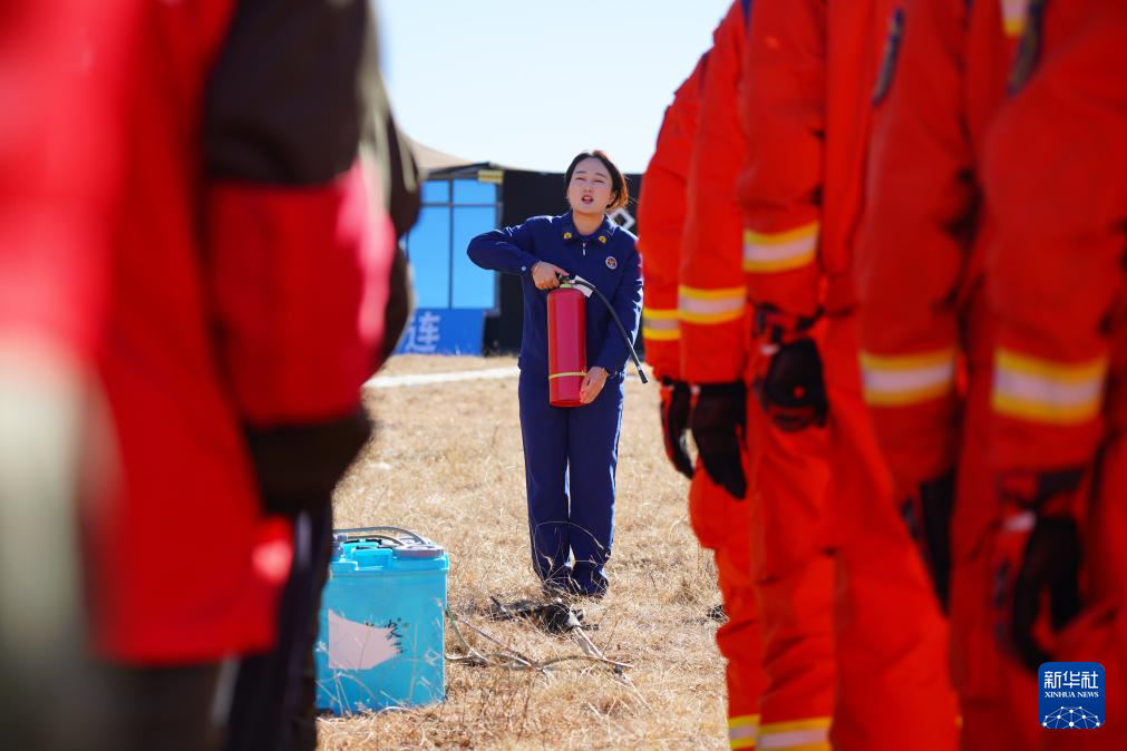 11月8日,在青海省海北藏族自治州祁連縣阿咪東索林區(qū),祁連縣消防救援大隊消防宣傳員為當?shù)刈o林員進行技能培訓。新華社記者 齊芷玥 攝