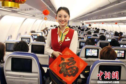 乘務員為旅客送上了紅棗茶和“福”字,在三萬米高空溫暖旅客回家路,其樂融融的客艙內像是一個溫暖的大家庭!