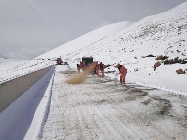 3月20日,記者從自治區(qū)公路局了解到,受低氣溫、強(qiáng)降雪影響,目前,國道318線K4166+000至K4203+000色季拉山段,K4378+000至K4492+000米拉山段路面積雪結(jié)冰較往年嚴(yán)重,局部路段積雪厚度達(dá)40cm以上。為確保公路安全暢通,林芝公路分局立即啟動搶險(xiǎn)保通應(yīng)急預(yù)案,組織全體養(yǎng)護(hù)職工上路開展除雪除冰保通工作。針對彎道、陡坡等重點(diǎn)路段,加大機(jī)械和養(yǎng)護(hù)工人的投入力度,加快恢復(fù)道路車輛通行。由于高寒缺氧、交通不便,養(yǎng)護(hù)職工時(shí)常自備干糧充饑。冰雪融化后,養(yǎng)護(hù)工人還要對易結(jié)冰路段加大巡查力度,發(fā)現(xiàn)結(jié)冰路段立即按要求設(shè)置施工作業(yè)標(biāo)志并進(jìn)行打冰作業(yè),及時(shí)消除安全隱患,保證行車安全。