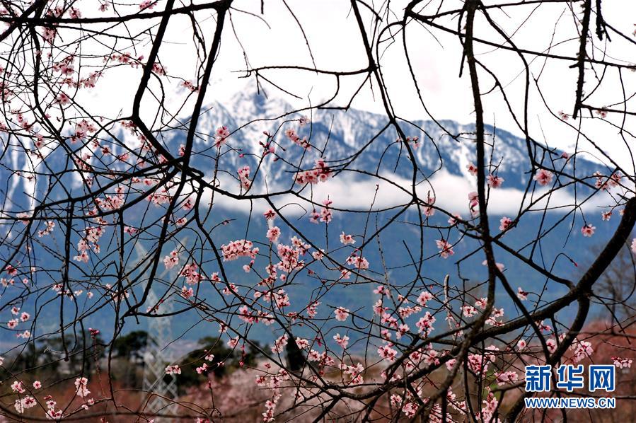 波密境內(nèi)桃花與雪山遙相輝映。資料圖 圖片來自新華網(wǎng)