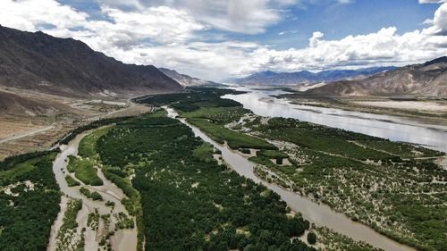 曾飽受風(fēng)沙侵?jǐn)_的雅魯藏布江山南段,如今已形成一道長160多公里、平均寬約1.8公里的“綠色長城”,成為極高海拔地區(qū)群眾遠(yuǎn)離惡劣高寒天氣的新家園。