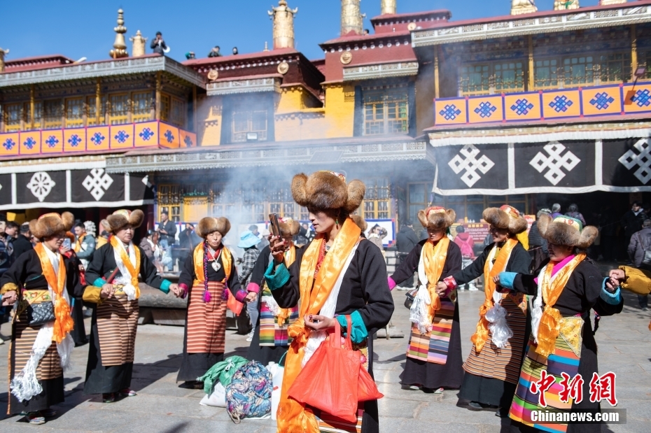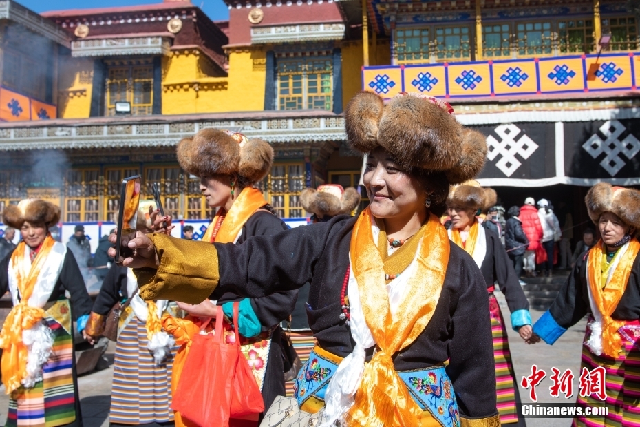 11月15日,西藏拉薩,拉薩婦女在扎基寺跳起傳統(tǒng)舞蹈,迎“仙女節(jié)”。“仙女節(jié)”即吉祥天母節(jié),藏語(yǔ)稱(chēng)“白來(lái)日追”。相傳藏傳佛教最高護(hù)法神之一班丹拉姆的女兒白拉姆,不顧母親的反對(duì)與赤尊贊私定終身,班丹拉姆一怒之下將赤尊贊趕到拉薩河南岸,規(guī)定二人僅每年的藏歷十月十五日相見(jiàn)。中新社記者 貢嘎來(lái)松 攝