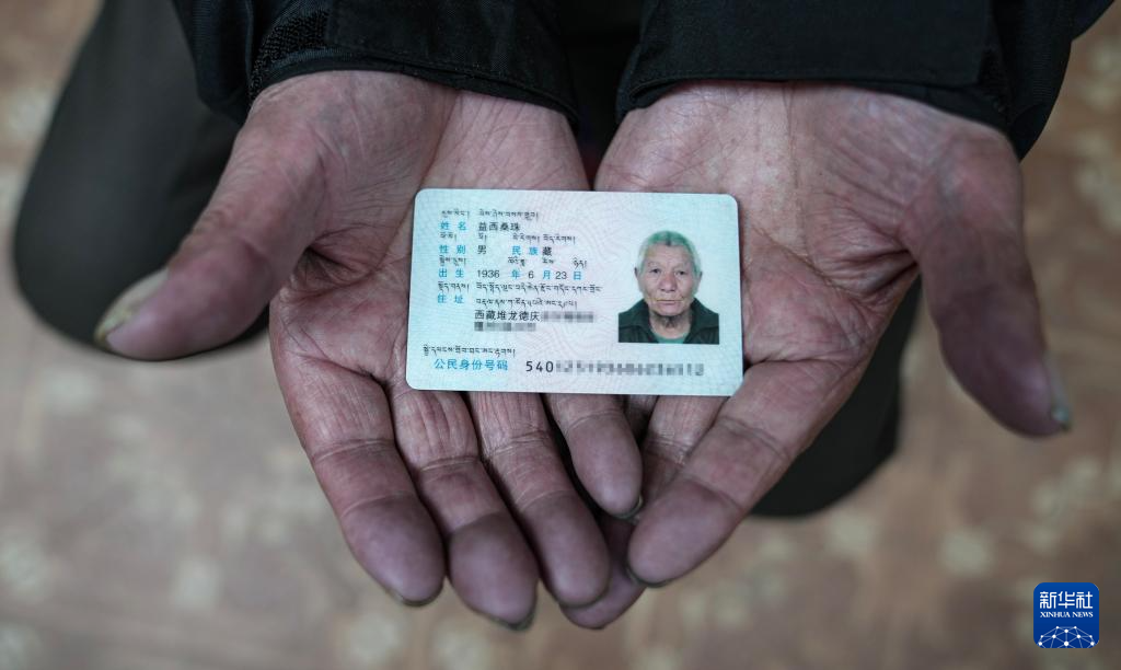 益西桑珠展示自己的身份證(3月13日攝)。新華社記者 晉美多吉 攝
