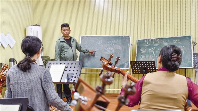琴聲悠揚,笛聲婉轉(zhuǎn)……在拉薩市城關(guān)區(qū)綜合文化服務(wù)中心,非遺民樂培訓(xùn)班正在如火如荼地進行中。不同年齡段的音樂愛好者在老師的指導(dǎo)下認真練習(xí)著各種樂器的演奏技巧。學(xué)員們從基礎(chǔ)的指法、節(jié)奏,到復(fù)雜的曲目演奏,每個人都全神貫注,沉浸在音樂的世界里。